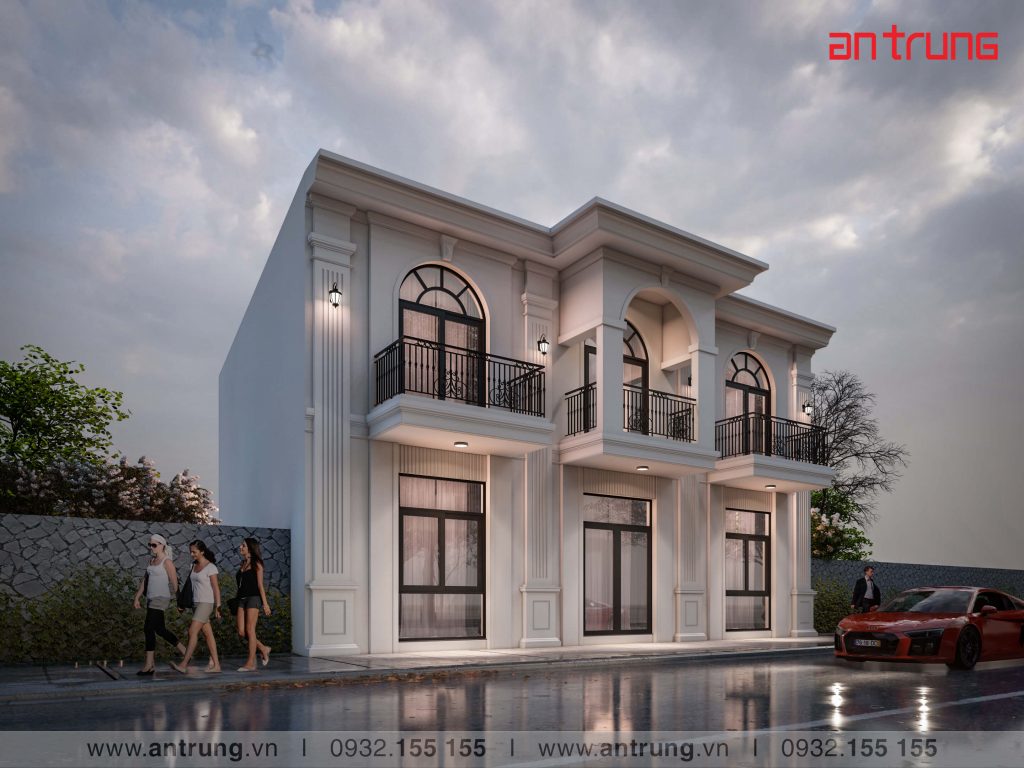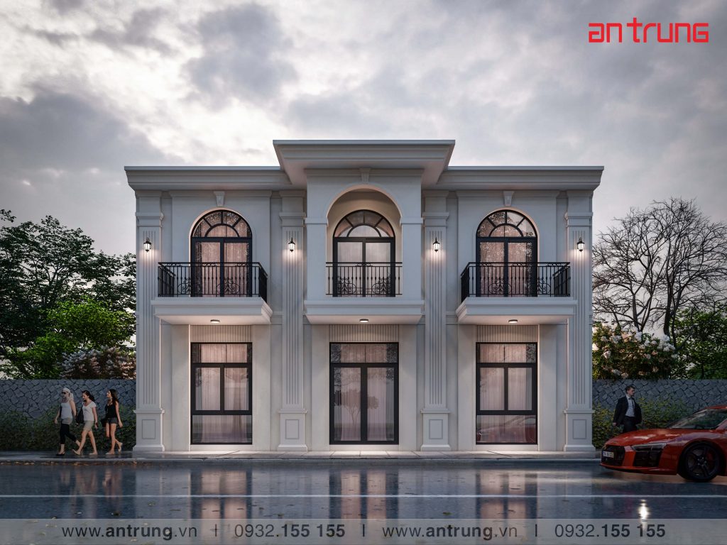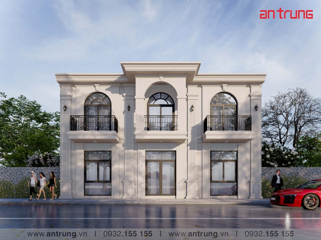 Hình thiết kế Thông tin mẫu nhàDiện tích xây dựng : 165 m2Số tầng cao : 2 tầngBề rộng mặt tiền : 11 m