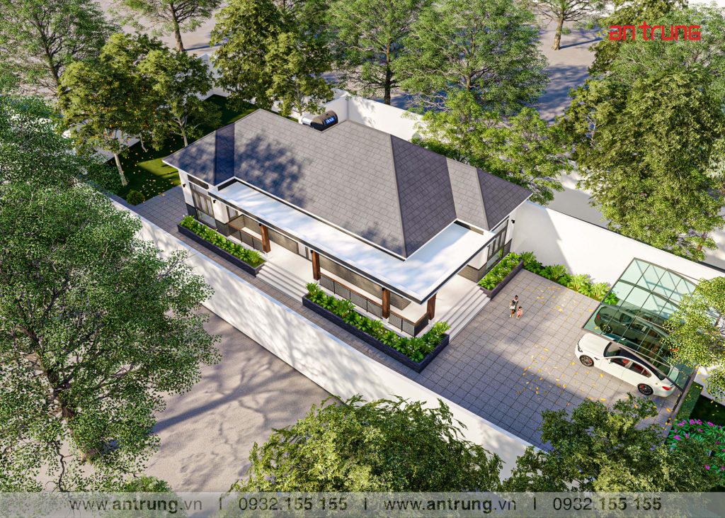 Hình thiết kế Thông tin mẫu nhàDiện tích lô đất : 1402 m2Diện tích xây dựng : 150 m2Số tầng cao : 1 tầngBề rộng mặt tiền : 19 m