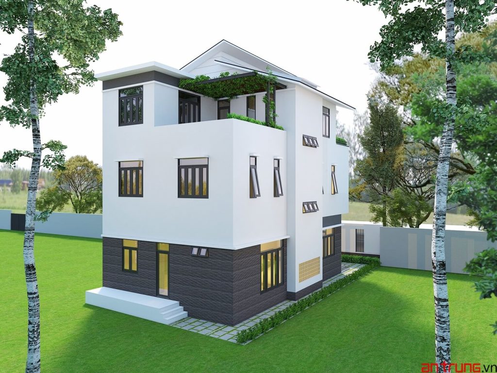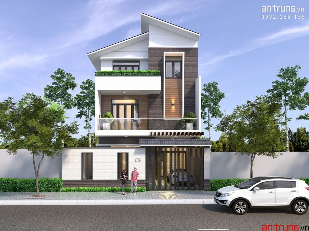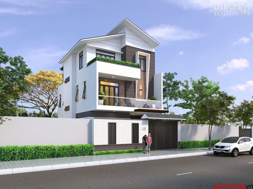 Hình thiết kế Thông tin mẫu nhàDiện tích lô đất : 187 m2Diện tích xây dựng : 125 m2Số tầng cao : 3 tầngBề rộng mặt tiền : 8.4 m