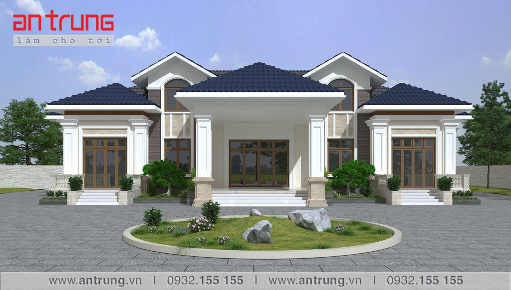 Hình thiết kế Hình thi công Thông tin mẫu nhàDiện tích lô đất : 275000 m2Diện tích xây dựng : 512 m2Số tầng cao : 1 tầngBề rộng mặt tiền : 29.7 m