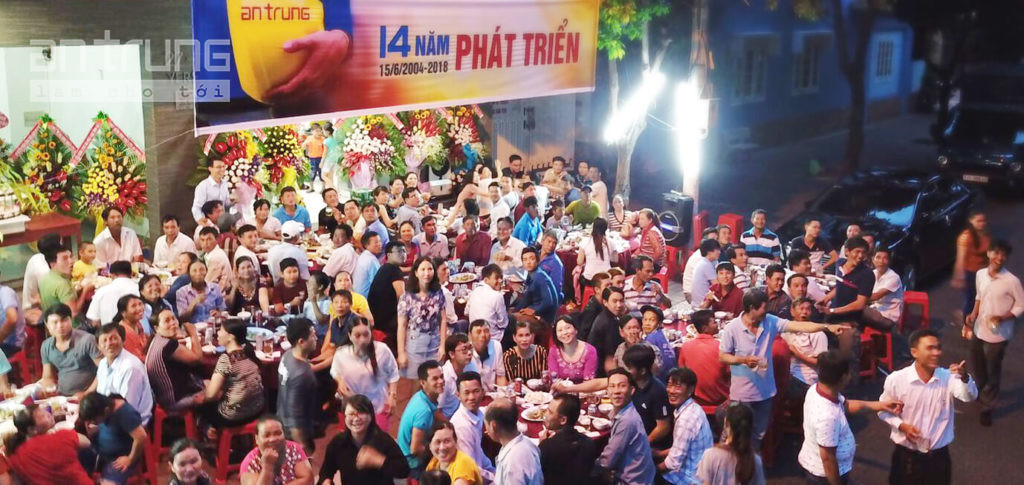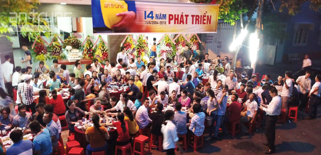 Định kỳ 15/6 hằng năm, An Trung tổ chức gặp mặt toàn thể cán bộ nhân viên và anh em công nhân mừng kỷ niệm ngày thành lập Công ty. Buổi tiệc năm nay đánh dấu cột mốc quan trọng trong sự nghiệp 14 NĂM PHÁT TRIỂN AN TRUNG. Gần 200 nhân viên vui vầy bên nhau trong buổi tối đầy ý nghĩa.